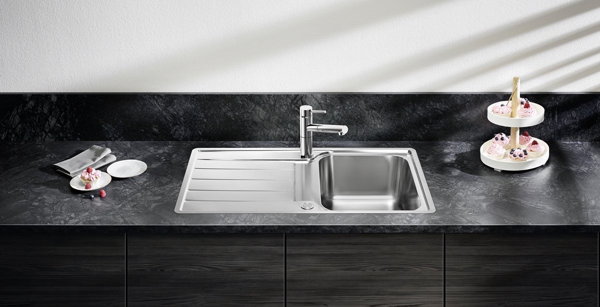 Ako Blanco drez je navrhnutý s dôrazom na praktickú ergonómiu: kombinácia jednej priestrannej vaničky a odkvapu podporuje plynulú prácu pri príprave jedla aj upratovaní.