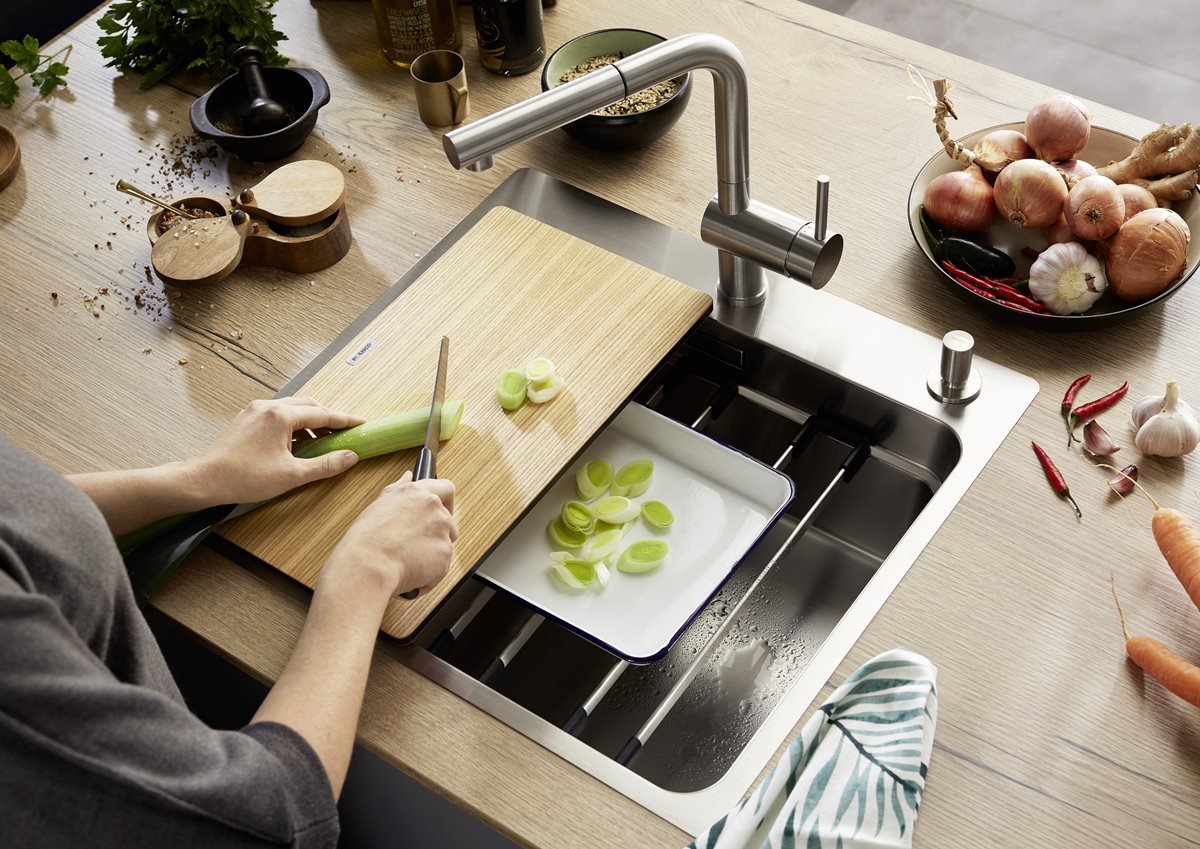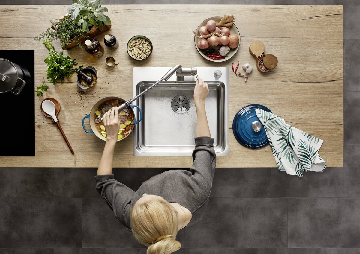 Pri bežnom varení oceníte veľkorysú vaničku: bez problémov opláchnete zeleninu, napustíte vodu do väčšieho hrnca alebo umyjete plech. Hĺbka 190 mm pomáha udržať vodu aj nečistoty viac „v dreze“, takže okolie batérie a dosky zostáva čistejšie.