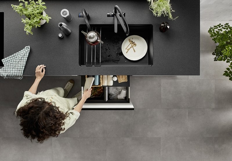 Keďže ide o poddoskový Blanco drez, pracovnú plochu okolo viete využiť naplno – pri príprave jedla stačí zvyšky zotrieť do drezu a rýchlo opláchnuť. Drez bez odkvapu zároveň necháva viac miesta na doske; ak často sušíte riad, dá sa to riešiť samostatným odkvapkávačom alebo doplnkami podľa preferencií.