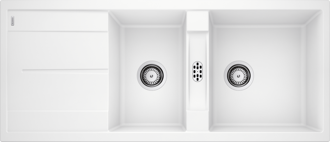 Model Metra 8 S patrí medzi Blanco drezy s výraznou pracovnou logikou: veľká vanička poskytuje komfort pri umývaní plechov, hrncov a rozmernejšieho riadu, zatiaľ čo odkvapová plocha uľahčuje odkladanie mokrých pohárov, príborov alebo opláchnutej zeleniny bez toho, aby ste museli zaberať miesto na pracovnej doske.