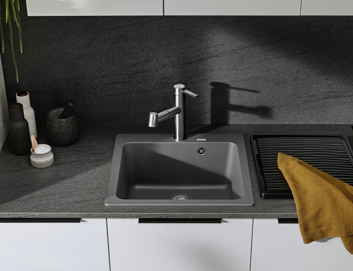 Dizajn je riešený ako jednodrez s čistými líniami, takže sa dobre kombinuje s rôznymi štýlmi kuchýň. Výhodou je aj výber farieb: Čierna, Antracit, Biela, Biela soft, Káva, Sivá skala, Sivá vulkán, Tartufo – vďaka tomu sa dá drez prirodzene zladiť s pracovnou doskou, obkladom aj spotrebičmi. Pri tmavších odtieňoch drez pôsobí výraznejšie, pri svetlých farbách naopak jemnejšie a nenápadne.