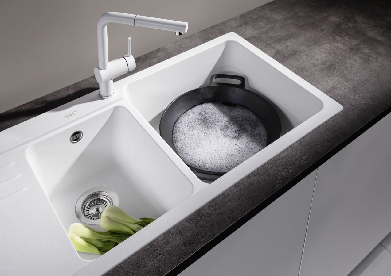 Veľká vanička je praktická na umývanie hrncov, panvíc a plechov, zatiaľ čo prídavná vanička sa hodí na oplachovanie ovocia a zeleniny alebo na odkladanie kuchynských pomôcok počas varenia. Odkvapová plocha uľahčí sušenie riadu a zároveň poskytne miesto na odloženie mokrých dosiek na krájanie či sitka bez toho, aby ste zbytočne zaberali pracovnú dosku.