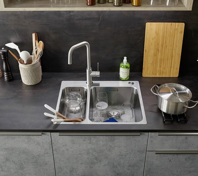 Keďže drez nemá odkvapovú plochu, oceníte ho v kuchyniach, kde je prioritou zachovať čo najviac pracovnej dosky. Excentrické ovládanie zároveň uľahčí napúšťanie vody do vaničky napríklad pri namáčaní riadu – bez kontaktu rúk so znečistenou vodou.