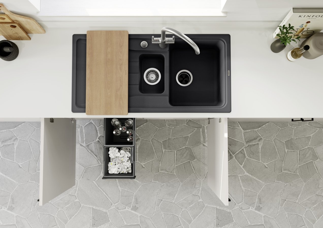 Model je dostupný vo viacerých farebných variantoch (Čierna, Antracit, Biela, Biela soft, Káva, Sivá skala, Sivá vulkán, Tartufo), takže sa dá ľahko zladiť s pracovnou doskou, obkladom aj spotrebičmi. Ak hľadáte blanco drez v tmavom odtieni, čierna alebo antracit pôsobia výraznejšie; svetlé varianty zas prirodzene zapadnú do minimalistických a škandinávskych kuchýň.