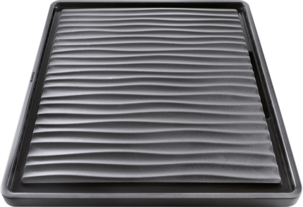Drez je bez odkvapovej plochy, takže je vhodný najmä tam, kde chcete pracovnú plochu využívať samostatne (napr. s odkvapkávačom na doske) alebo kde je prioritou čistý, minimalistický vzhľad.