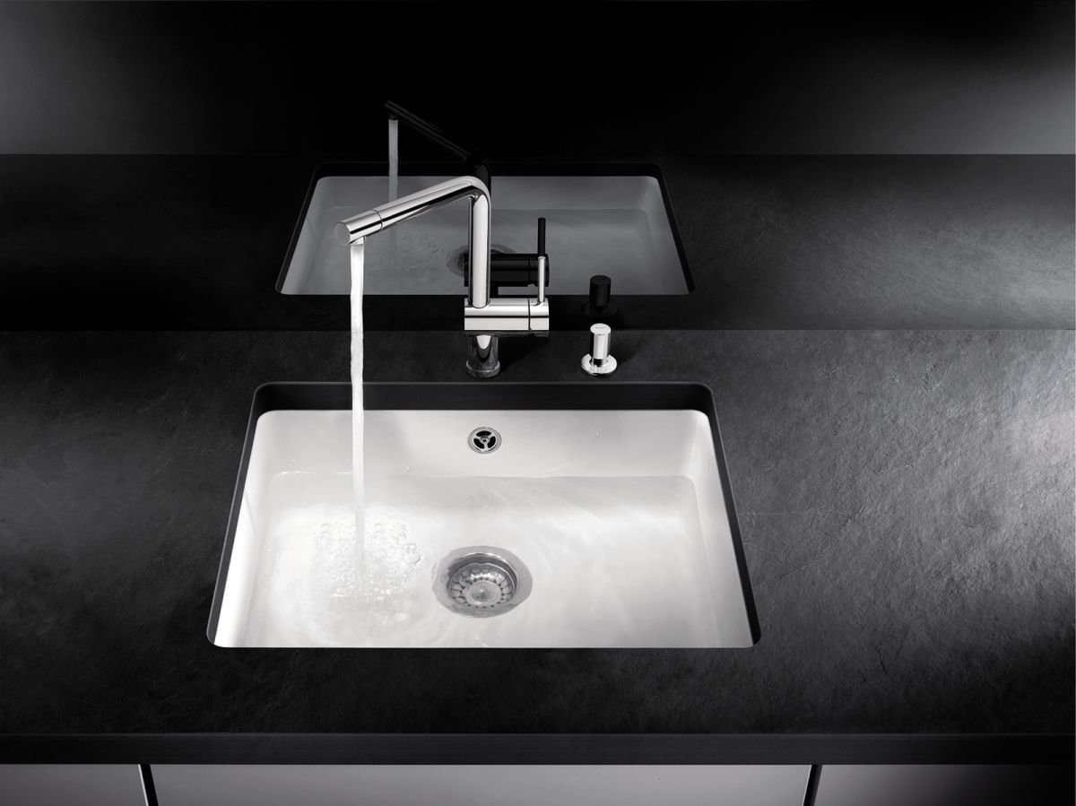 Tento blanco drez je navrhnutý na montáž pod pracovnú dosku (podpultové osadenie). V praxi to znamená jednoduchšie zotieranie nečistôt priamo do vaničky bez zachytávania na okraji drezu a zároveň elegantný vzhľad pracovnej dosky.
