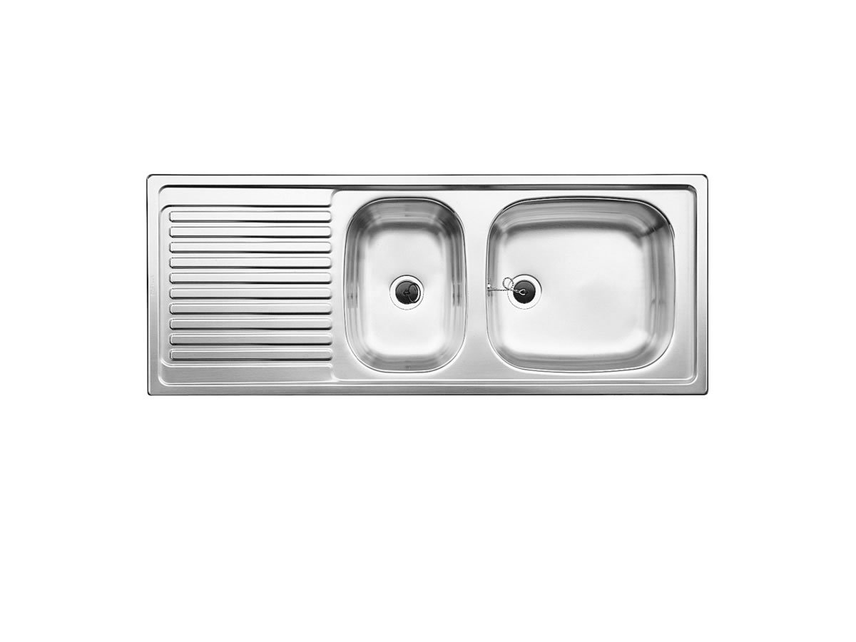 Požadovaná je minimálna šírka spodnej skrinky 80 cm, čo zodpovedá tomu, že ide o väčší kuchynský drez s odkvapom a prídavnou vaničkou. Orientácia je univerzálna, takže odkvap viete osadiť vpravo alebo vľavo podľa toho, kde máte umývačku, varnú zónu či hlavný pracovný priestor. Drez je bez excentrického ovládania, čiže ovládanie výpuste (ak je osadená) sa rieši štandardne priamo v dreze.