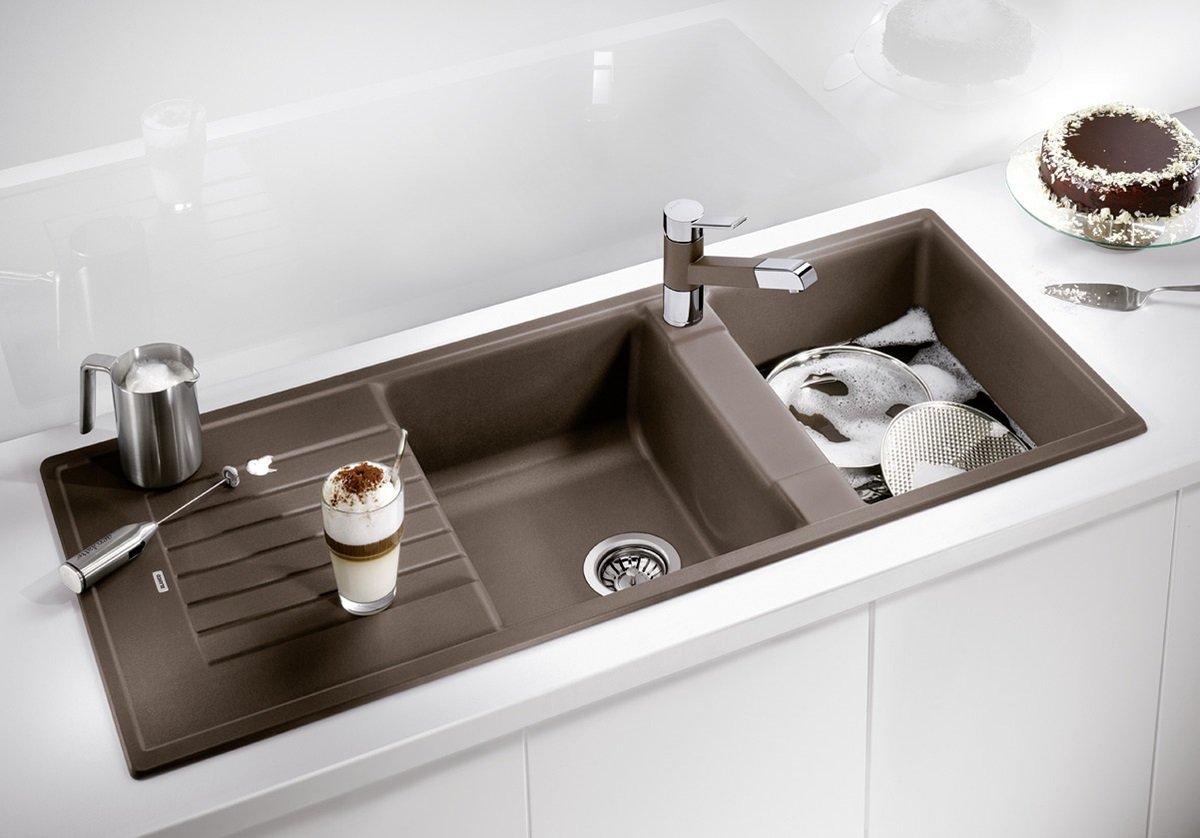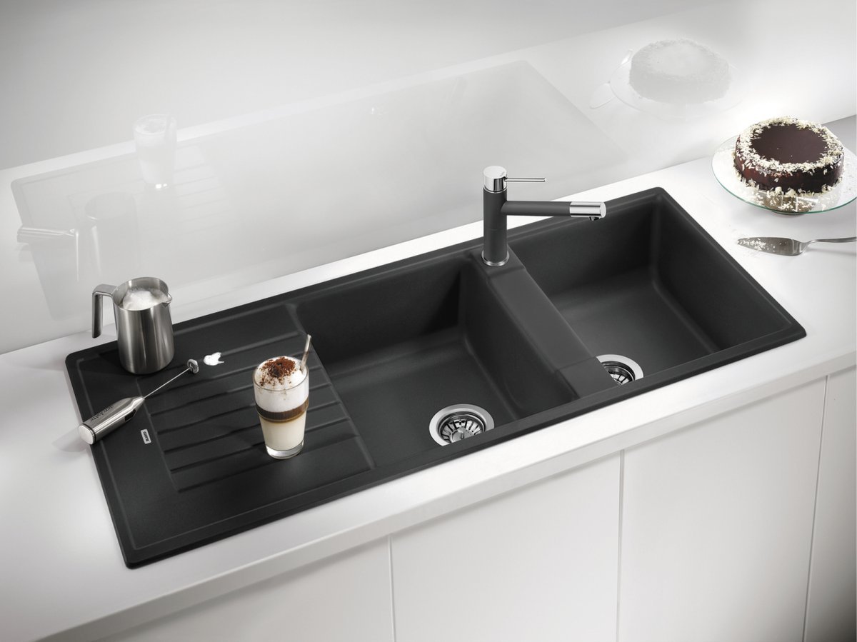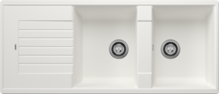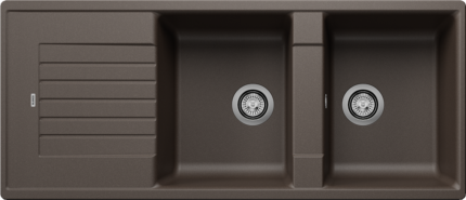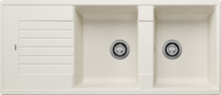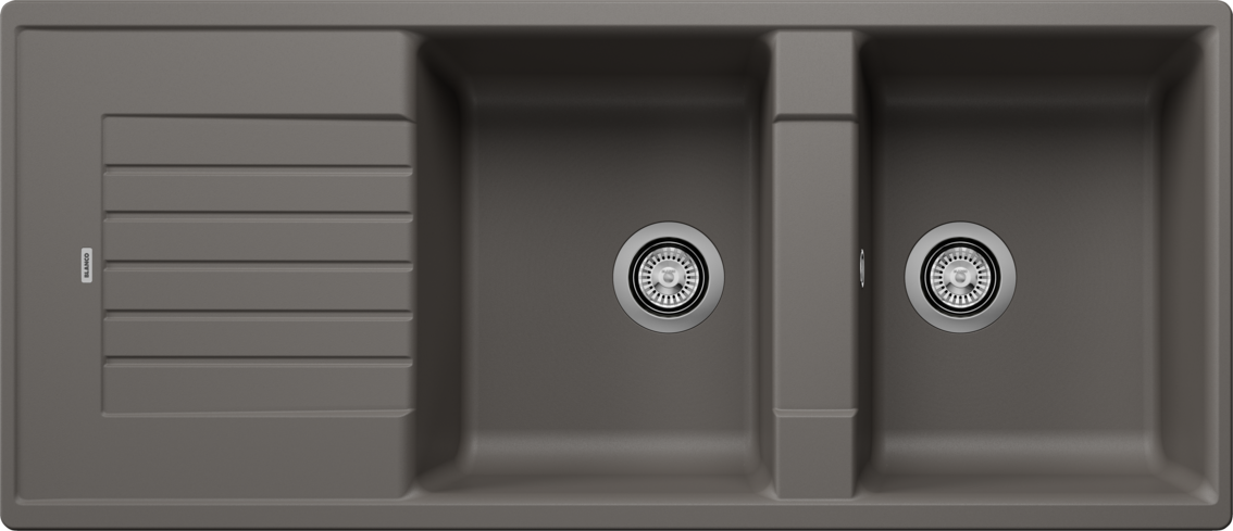 Blanco Zia 8 S Granitový drez je priestranný granitový dvojdrez s odkvapom určený pre kuchyne, kde sa často varí a umýva viac riadu naraz. Dve rovnako hlboké vaničky uľahčia paralelnú prácu (napr. umývanie a oplachovanie), pričom odkvapová plocha pridá miesto na odkladanie mokrého riadu. Vďaka univerzálnej orientácii sa dá prakticky prispôsobiť dispozícii pracovnej dosky.